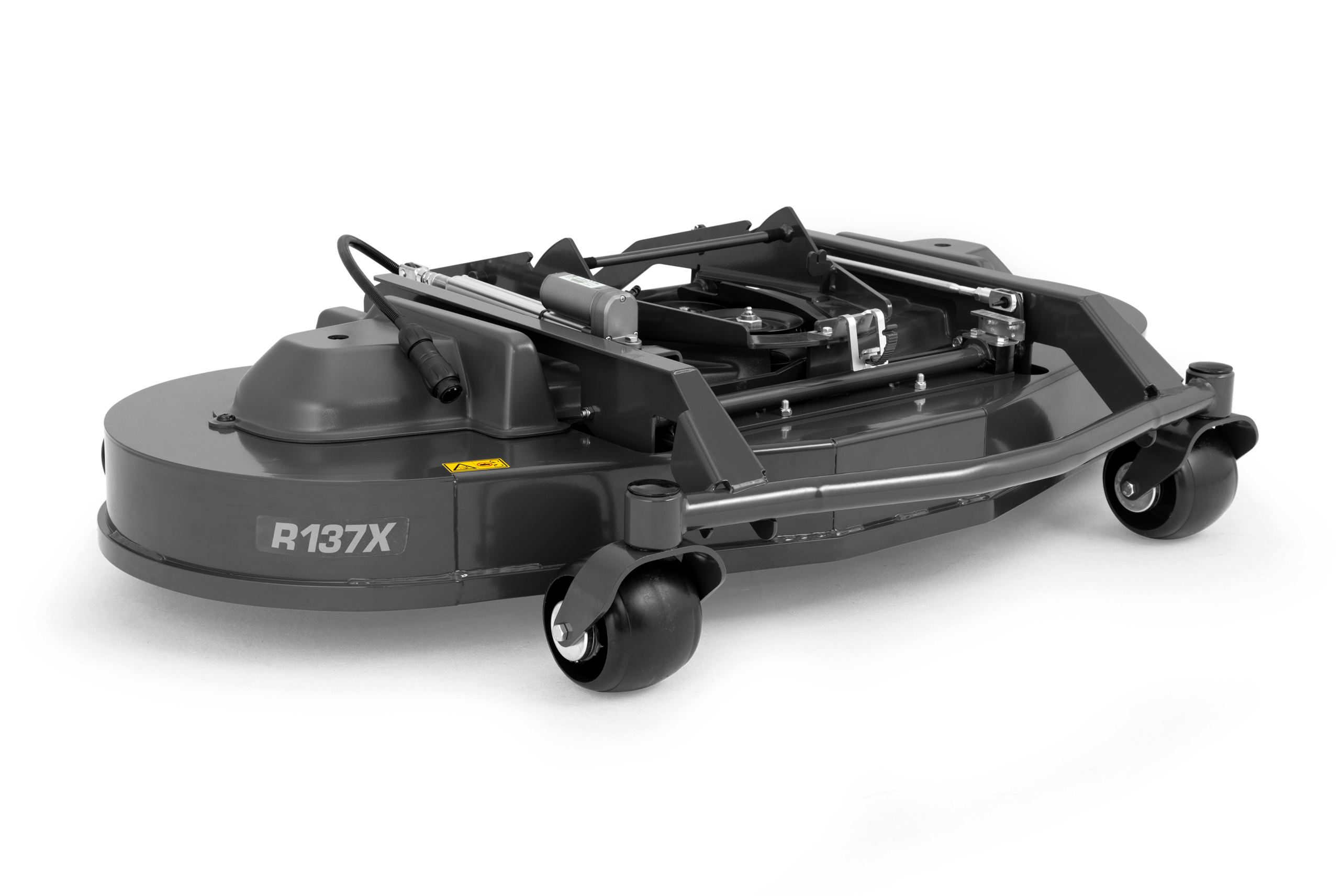 Husqvarna R137X är ett klippaggregat med 137 cm (54″) klippbredd med bakutkast. Högpresterande aggregat för produktiv klippning av områden med tyngre gräs. Elektrisk höjdjustering från förarplats. Den elektriska klipphöjdsjusteringen kan enkelt manövreras från förarsätet. Kräver att frontrotorklipparen har utrustats med kablagesats för elektriska tillbehör.